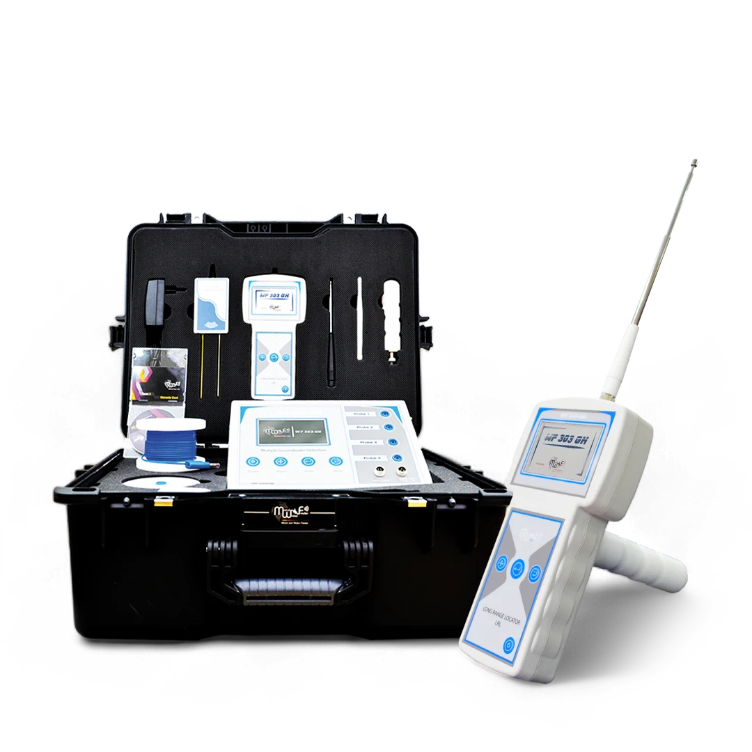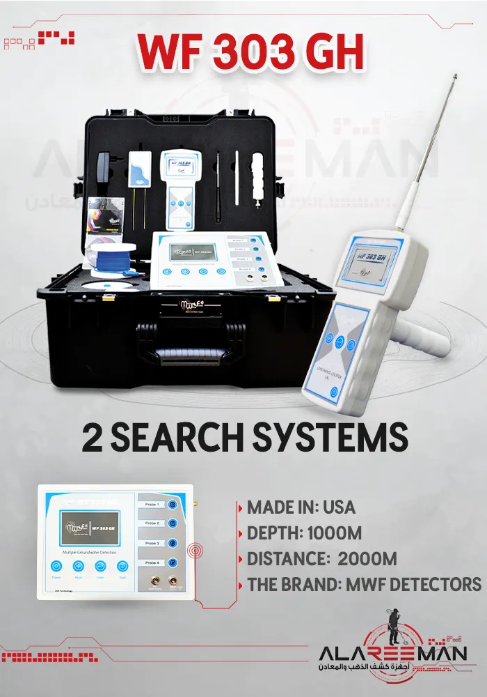 Handheld LRL system: The advanced and all-new long-range search system with high sensitivity and advanced features, featuring an automated tracking system for accurate tracking of the water point path. The system provides audio results and digital indicators on the screen, determining the drilling point for water with precision. It offers full control of search properties and criteria, with a search depth of up to 1000 meters and covers a forward search distance of 2 km, with precise control of search coordinates.