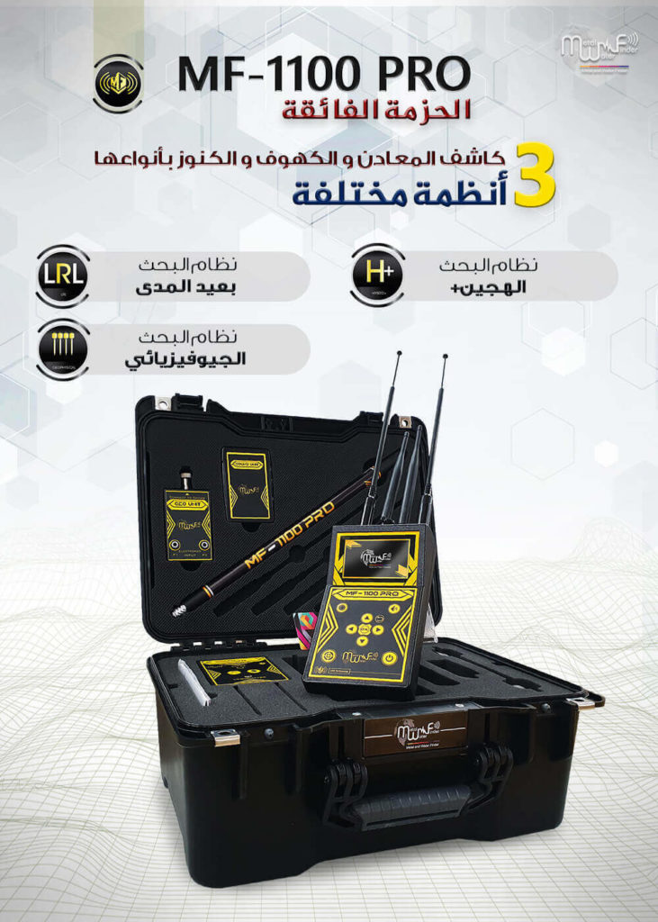 - يمتلك جهاز MF-1100 PRO قدرات وخصائص كبيرة ووظائف متعددة تجعله جهاز الثقة الأول لبدء عمليات تنقيب ناجحة.